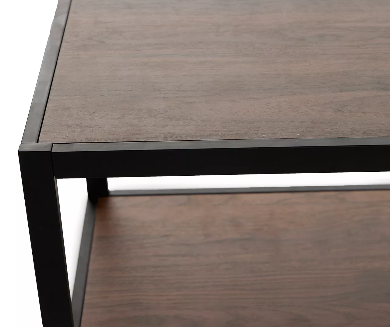Add modern style to your flatscreen TV or home audio setup with this media console table. Built around a solid metal frame for stability and durability, the table includes three handy wooden shelves for storing cable boxes, gaming accessories, media collections, and more. Best of all, it features a real wood look, ample storage, and timeless mid-century modern style.