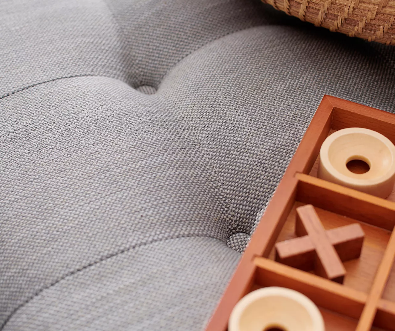 - Material: Rubber wood + MDF + Ply wood + Polyester fabric