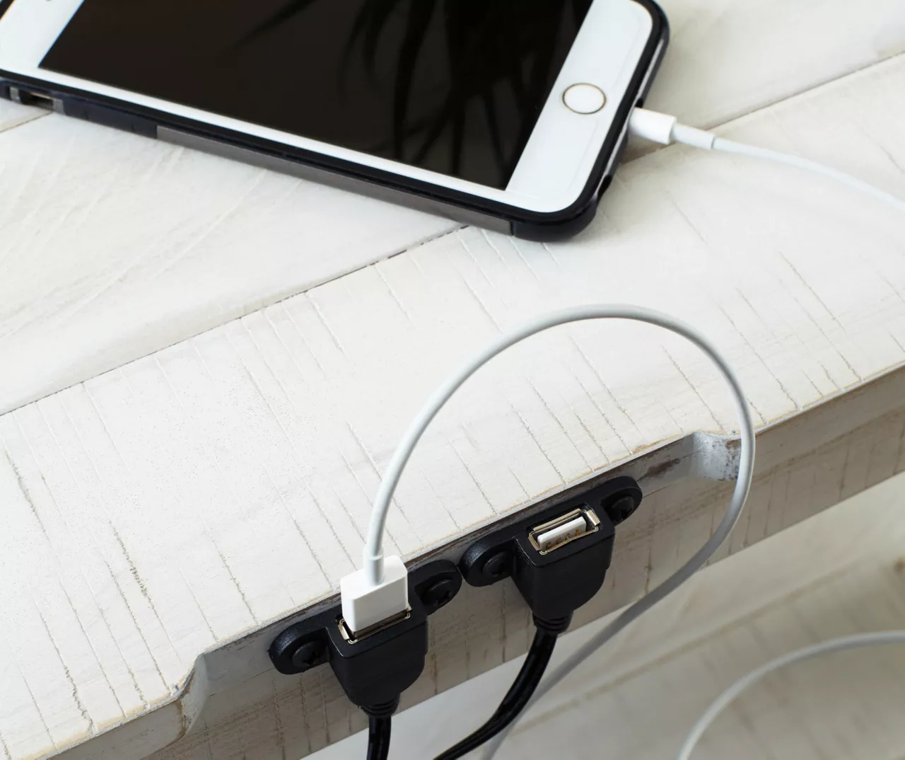 - Offers 2 slim-profile USB ports with power cord for charging devices
