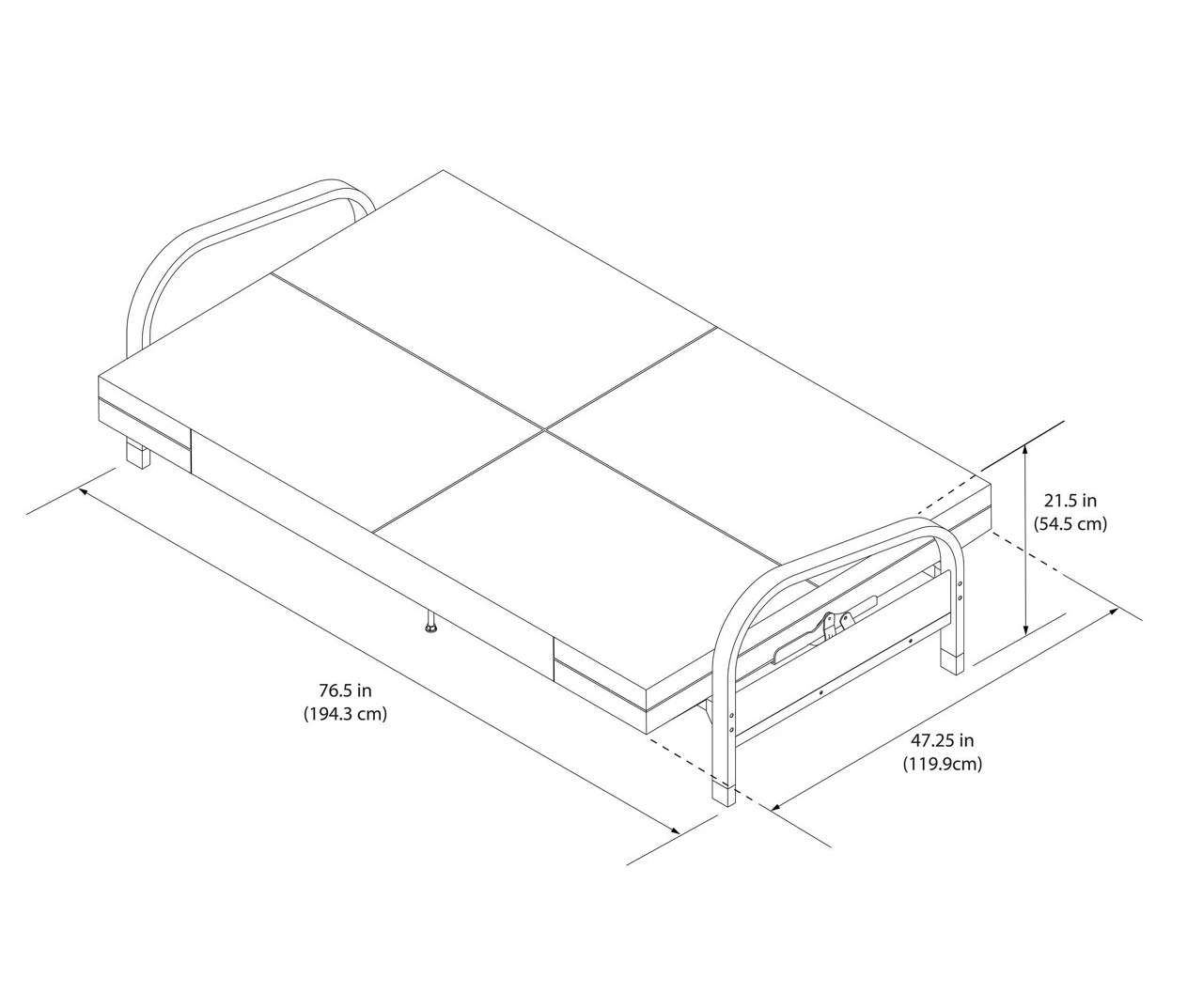 - Sleeping dimensions: 76.5”L x 47”W x 21.5”H