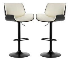 Glitzhome Mid-Century Modern Faux Leather Adjustable Bar Stools, 2-Pack