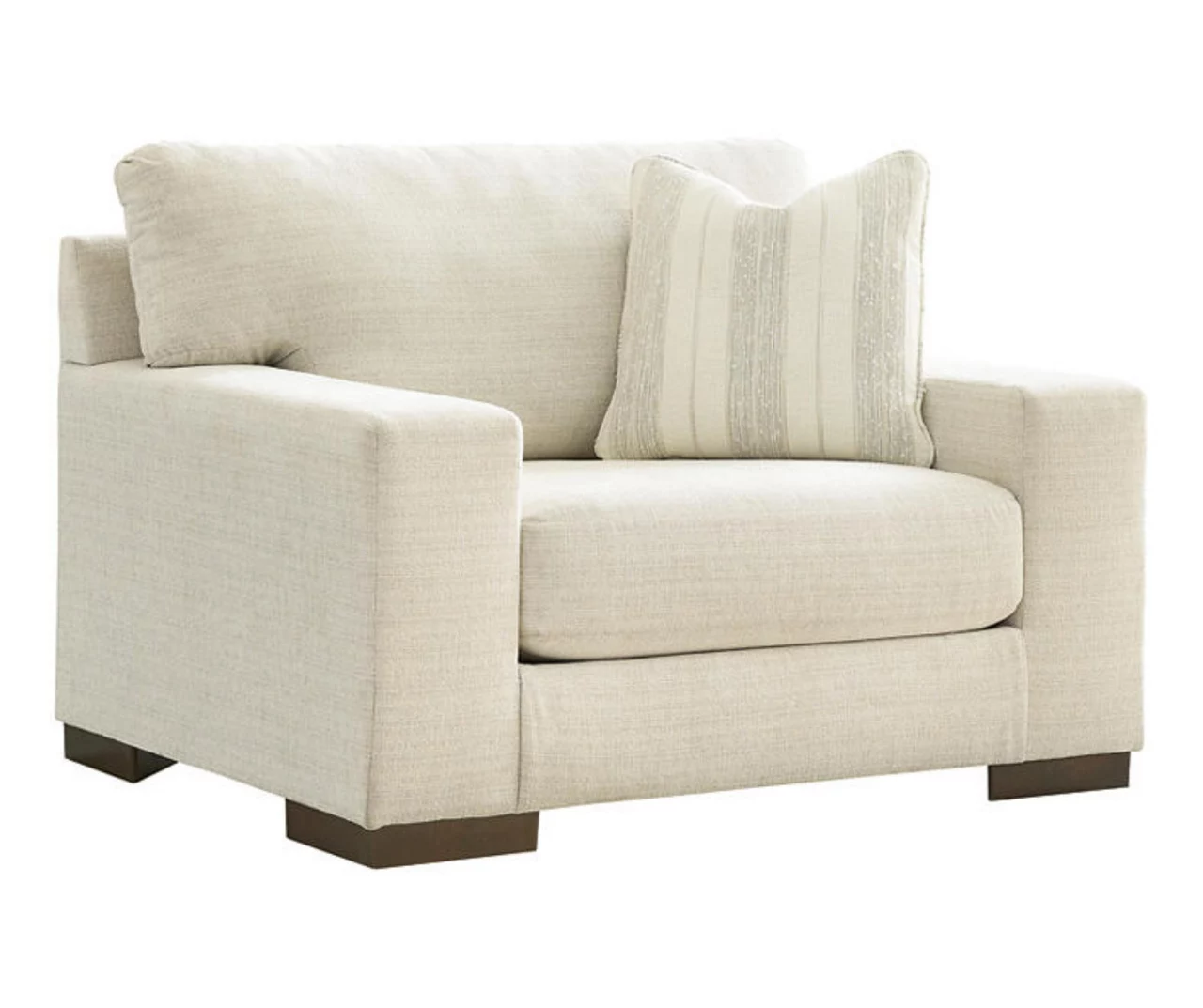Classic comfort gets a mod twist with this oversized chair. Its minimalistic approach and structured silhouette bring a clean-lined design element to your living room. Sink into the positively plush cushions while relaxing solo, or curl up with a glass of wine while hosting guests. And with light neutral upholstery that suits both casual and contemporary spaces, this chair offers endless style possibilities.
