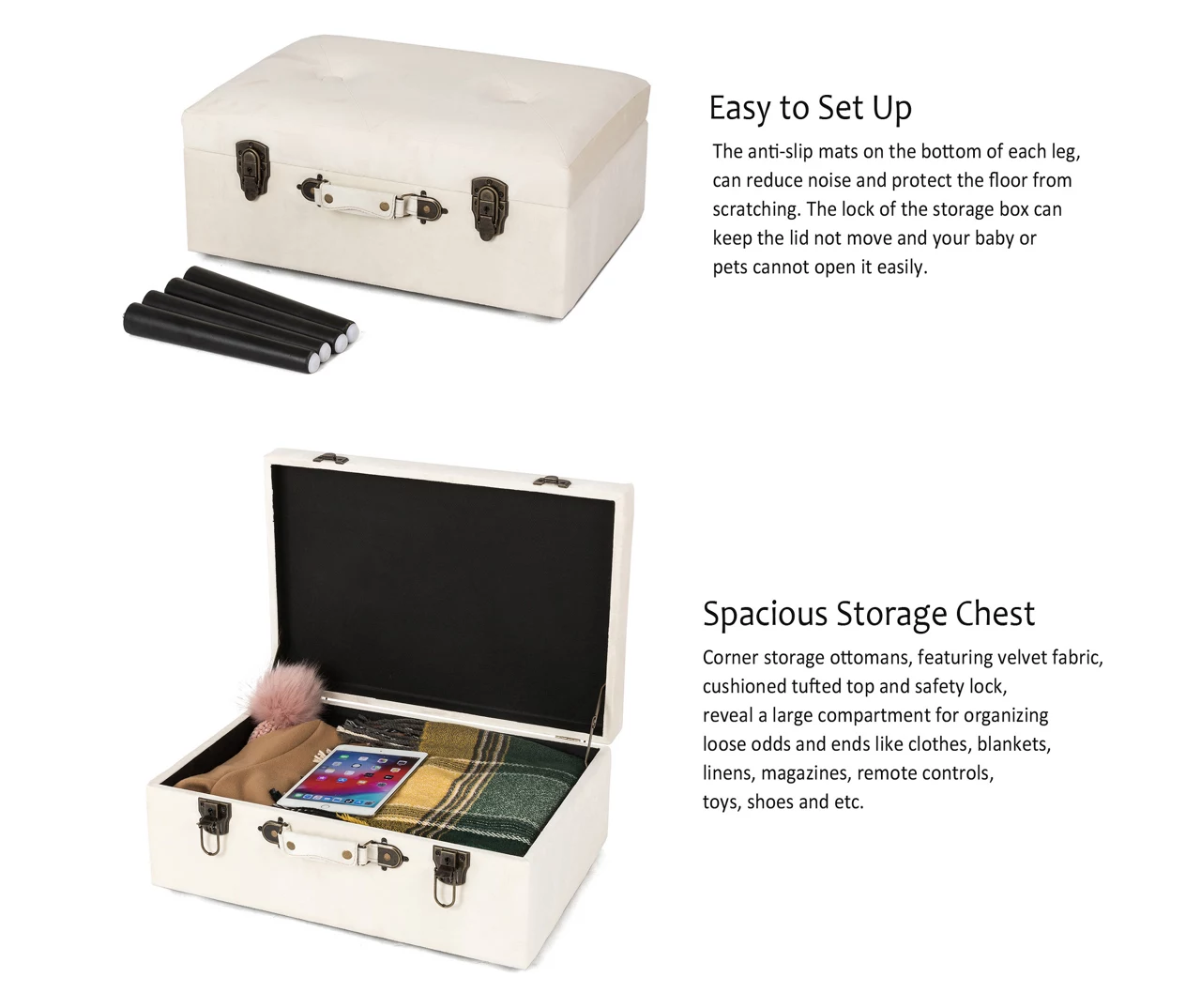 Seashell White Velvet Suitcase Storage Stool -Walker Edison Shop 810598945 A0 2