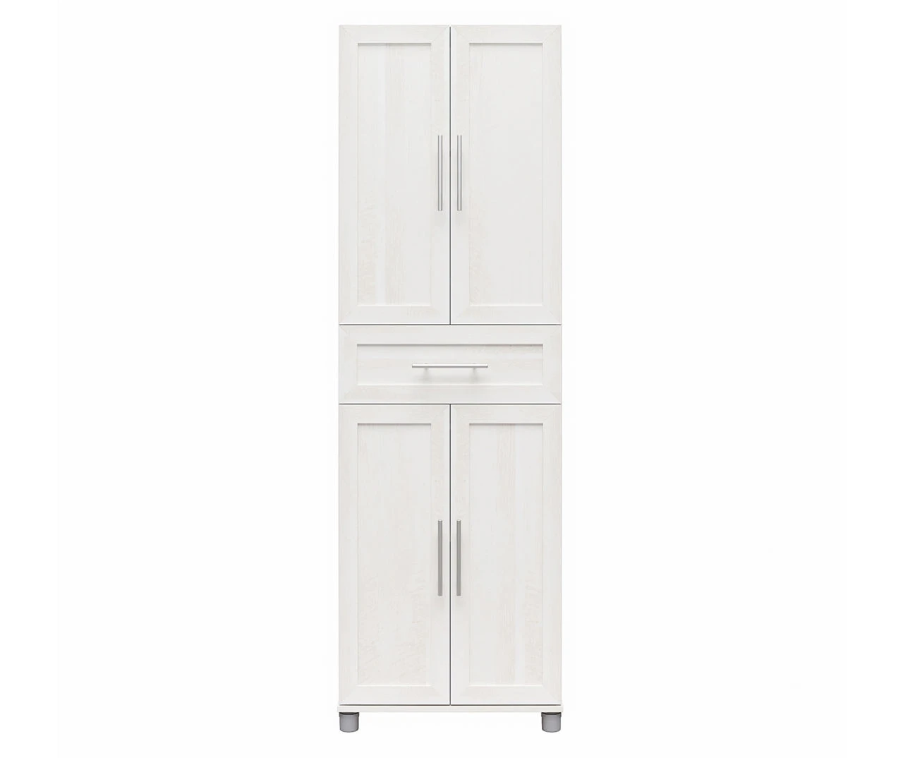 - Offers 1 fixed and 1 adjustable shelf behind 2 doors for items